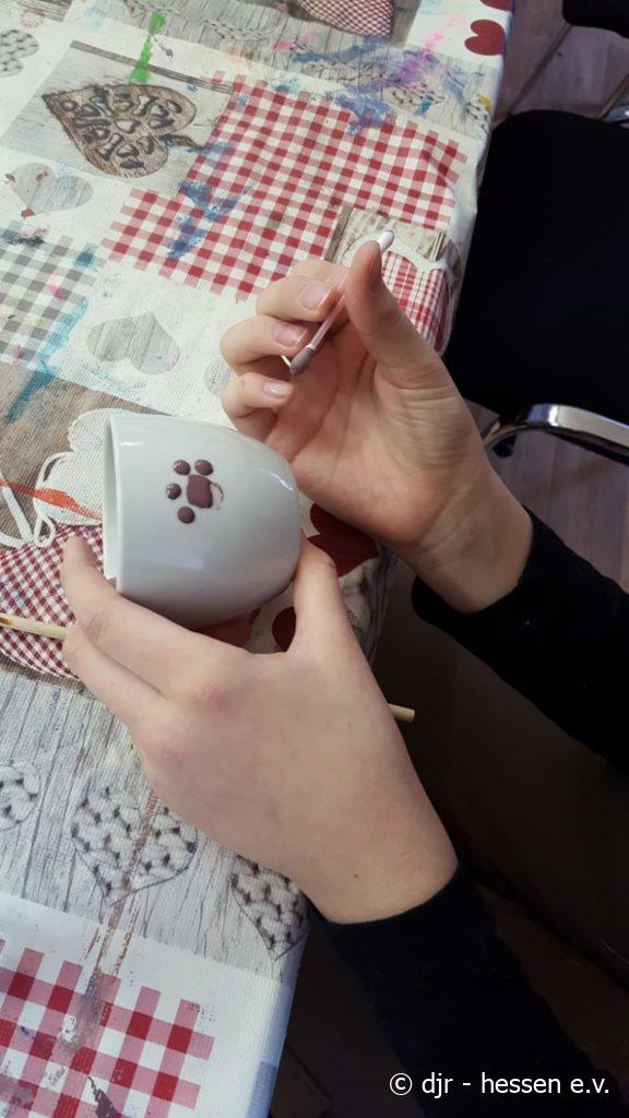 Unser Ferienprogramm neigt sich dem Ende zu, doch auch die letzte Aktivität sollte man auf keinen Fall verpassen. Mit Nagellack haben die Kinder die Möglichkeit bekommen, ihr eigenes weißes Porzellanset zu bemalen. Man sieht: keins gleicht dem anderen, jedes Kind hat seine ganz eigene Vorstellung davon, wie das fertige Ergebnis aussehen soll. Der Kreativität sind keine Grenzen gesetzt.