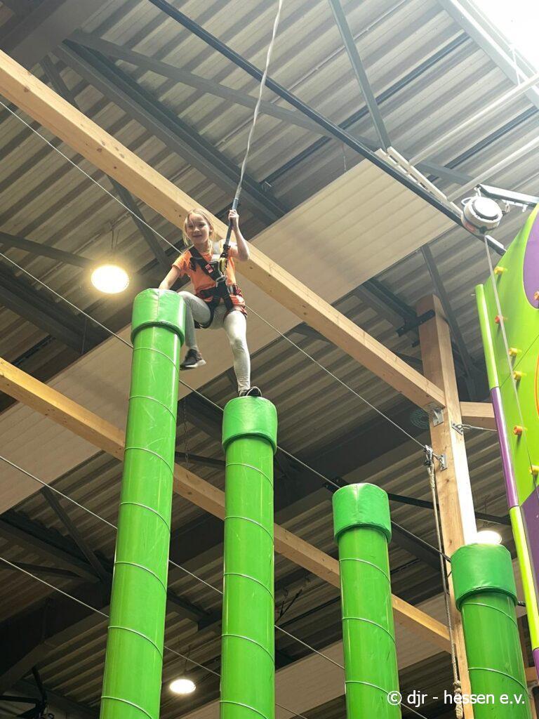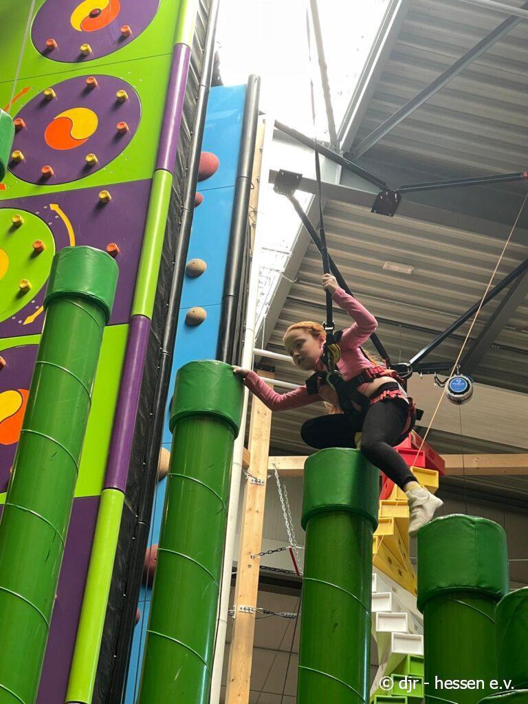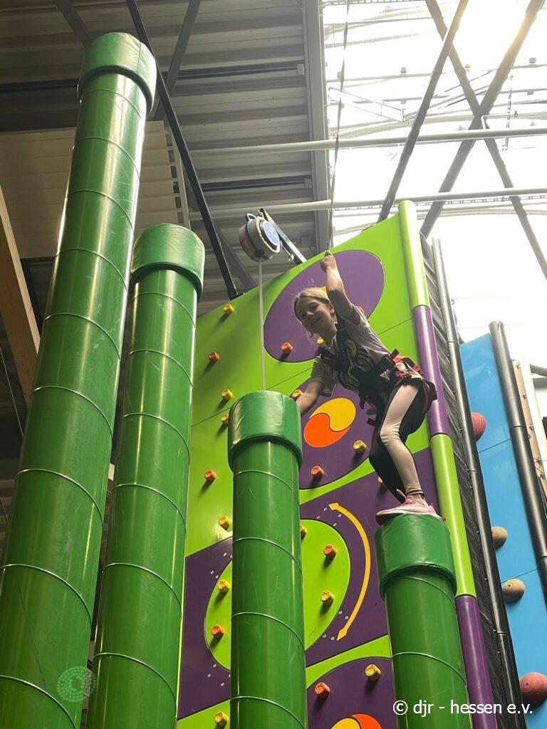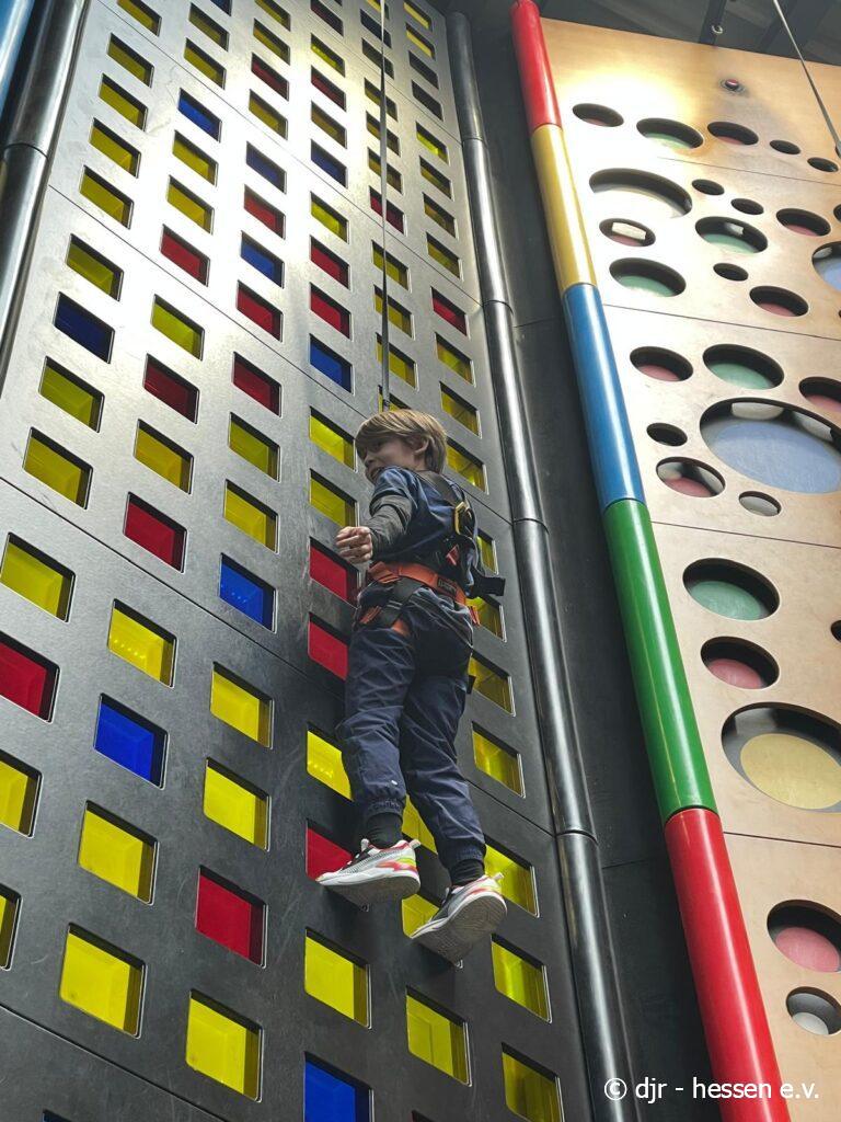 Heute geht es hoch hinauf: In der Kletterhalle können die Kinder auf bunten und ausgefallenen Kletterwänden ihren Mut beweisen.