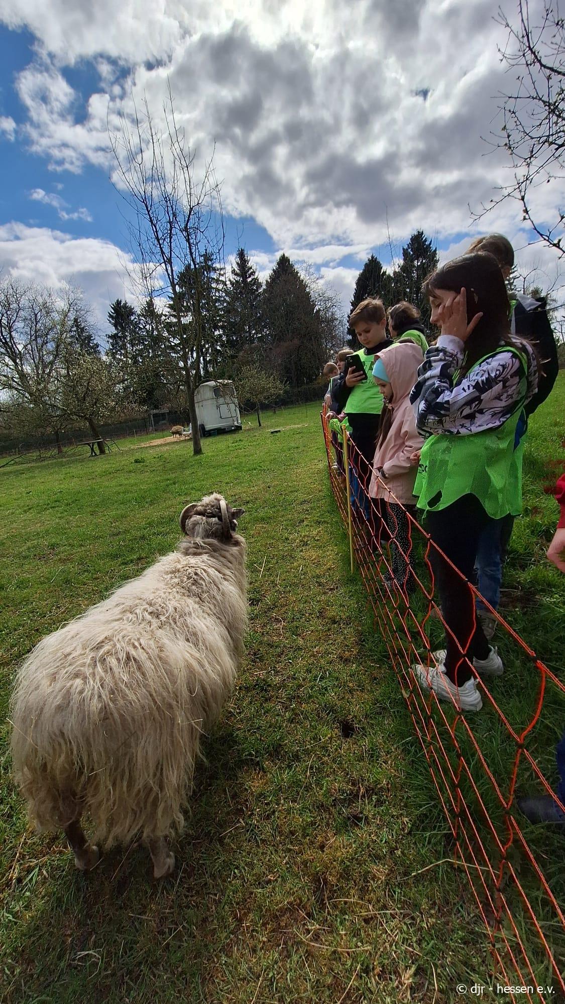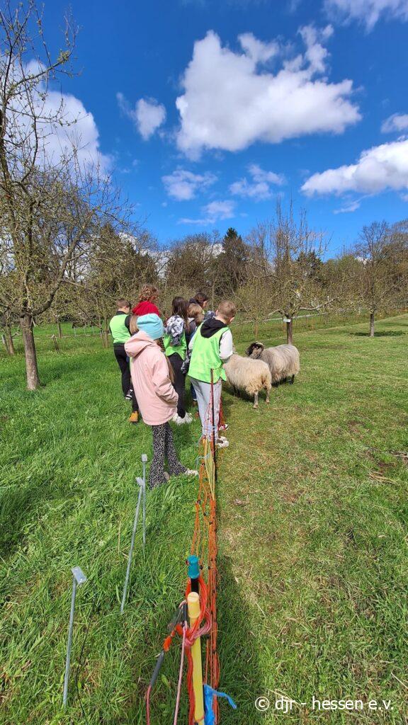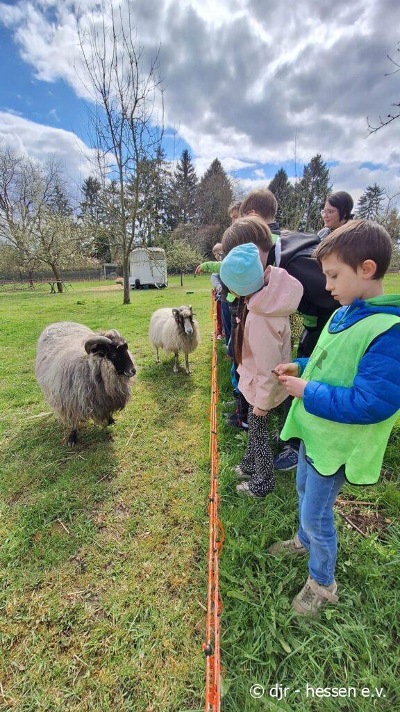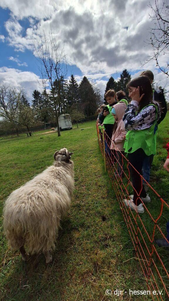 Heute geht es raus an die frische Luft: Die Kinder lernen hier alles über die Tiere des Mainäppelhauses und dürfen anschließend sogar die Schafe besuchen.