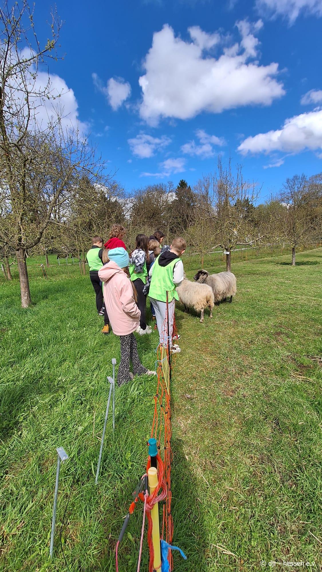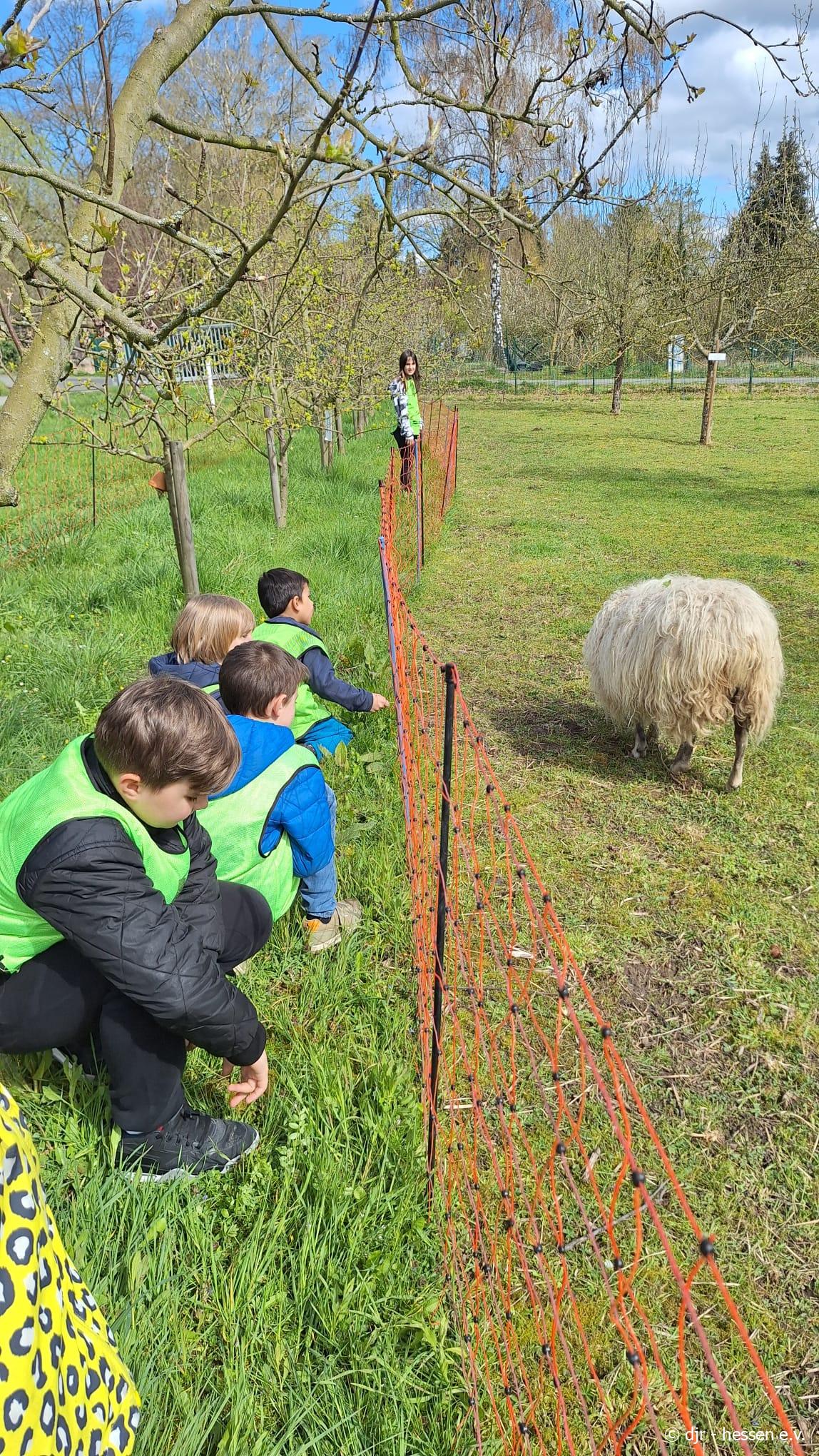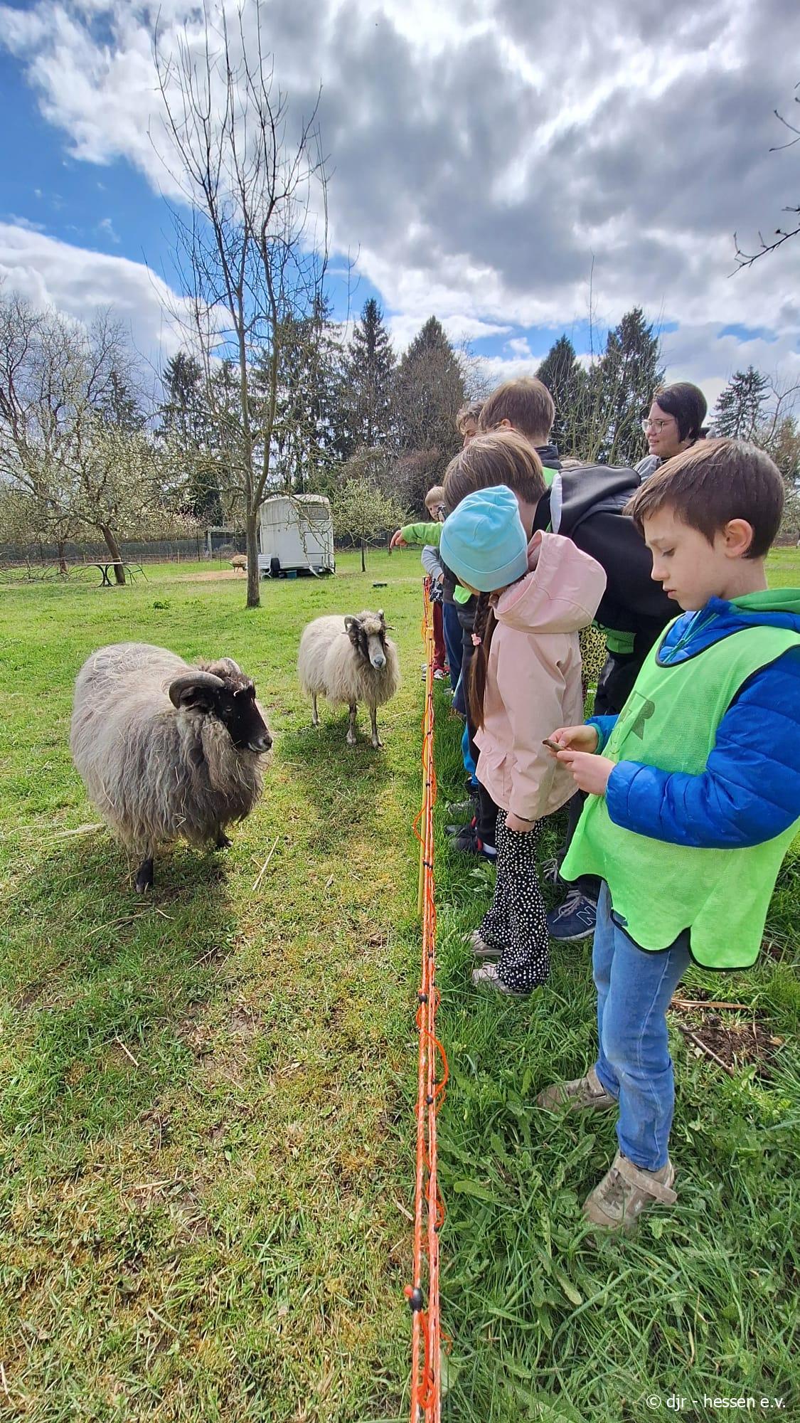 Heute geht es raus an die frische Luft: Die Kinder lernen hier alles über die Tiere des Mainäppelhauses und dürfen anschließend sogar die Schafe besuchen.