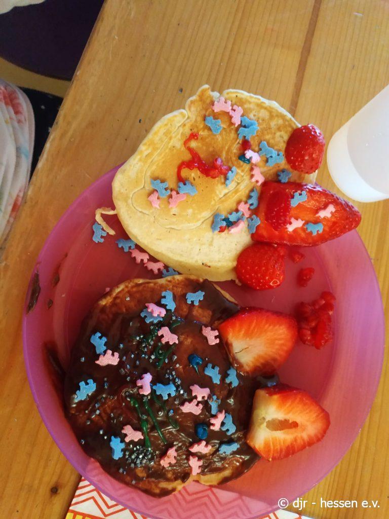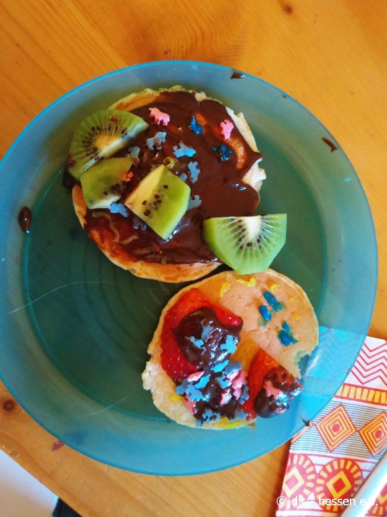 Die Koch-AG konnte heute ganz besonders kreativ sein: gemeinsam haben sie leckere Pancakes gemacht und diese dann einzigartig verziert. Da braucht man ja gar nicht mehr ins Restaurant zu gehen 🙂