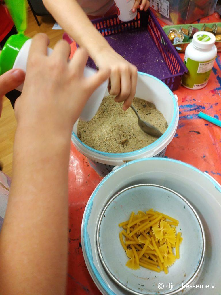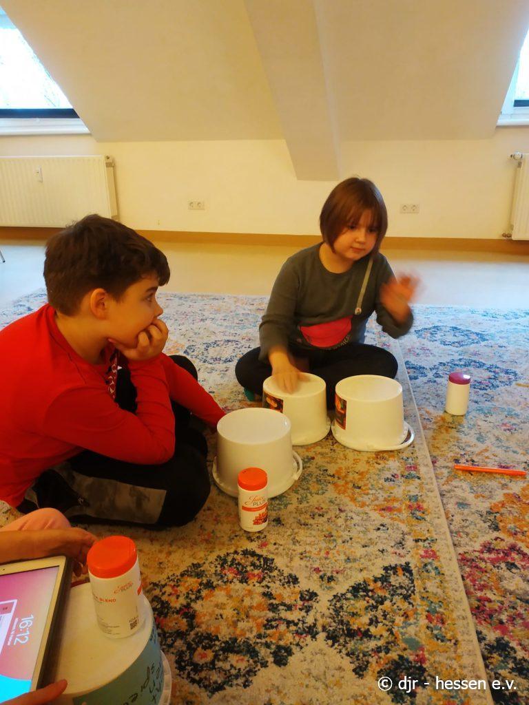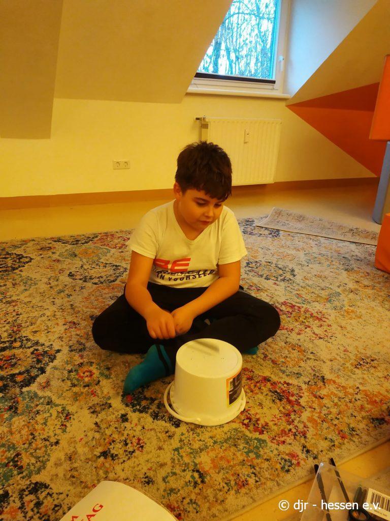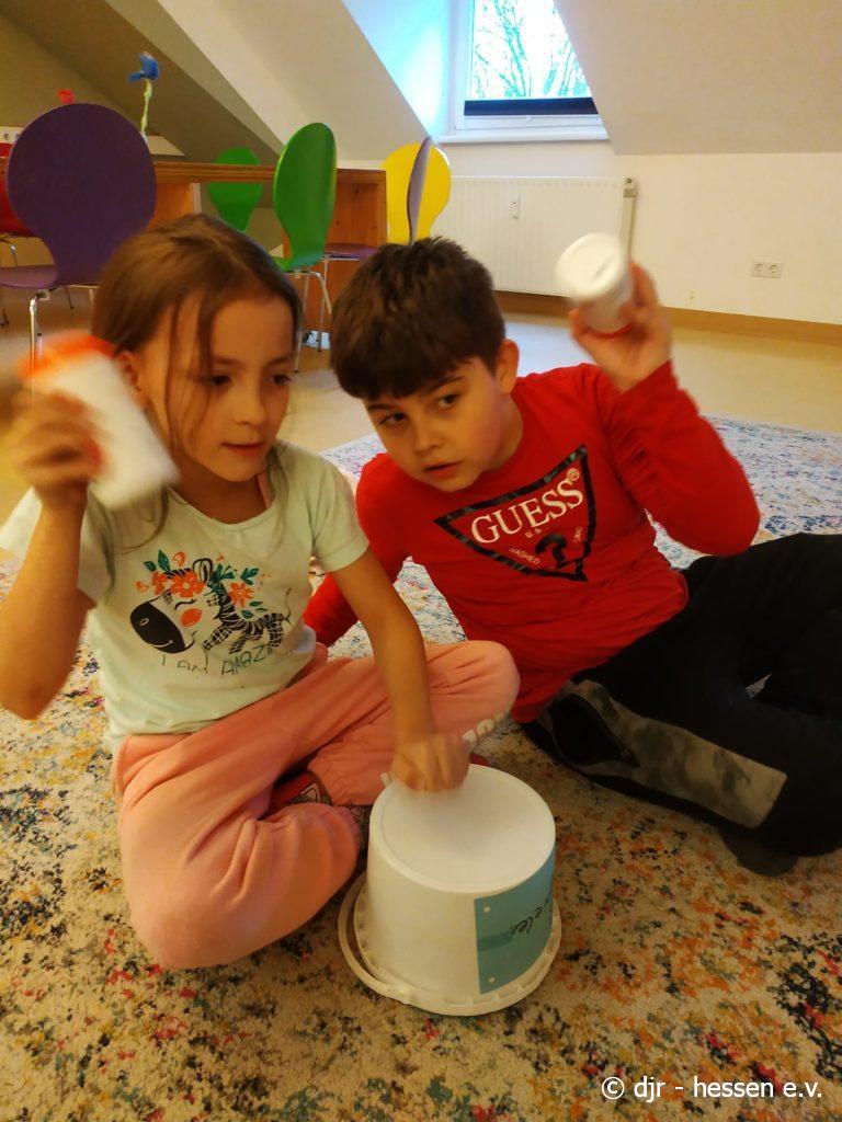 Diese Woche macht es den Kindern besonders viel Spaß, im Kreis Rhythmen zu trommeln. Es gibt viele Variationen dieser Beschäftigung, sei es Rhythmen nachzutrommeln oder dem verbotenen Rhythmus auszuweichen. Am Ende haben sich die Shaker gebastelt, mit denen sie ebenfalls tolle Rhythmen machen konnten.