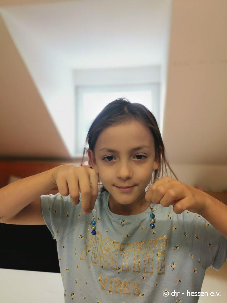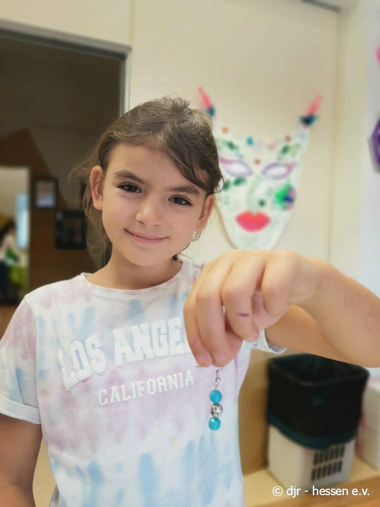 Aus bunten Perlen gestalten sich die Kinder heute Ohrringe. So etwas findet man in keinem Geschäft wieder…