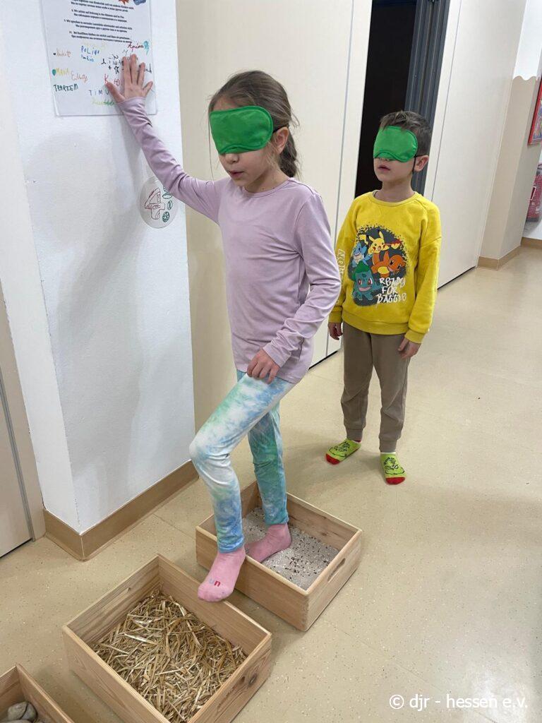 Auf die Kinder warten heute verschiedene Stationen, bei denen sie ihre Sinne entdecken können. Vom Barfußpfad über blindes Malen, Riechen, Fühlen und Hören: Für alle Sinne ist hier etwas dabei.