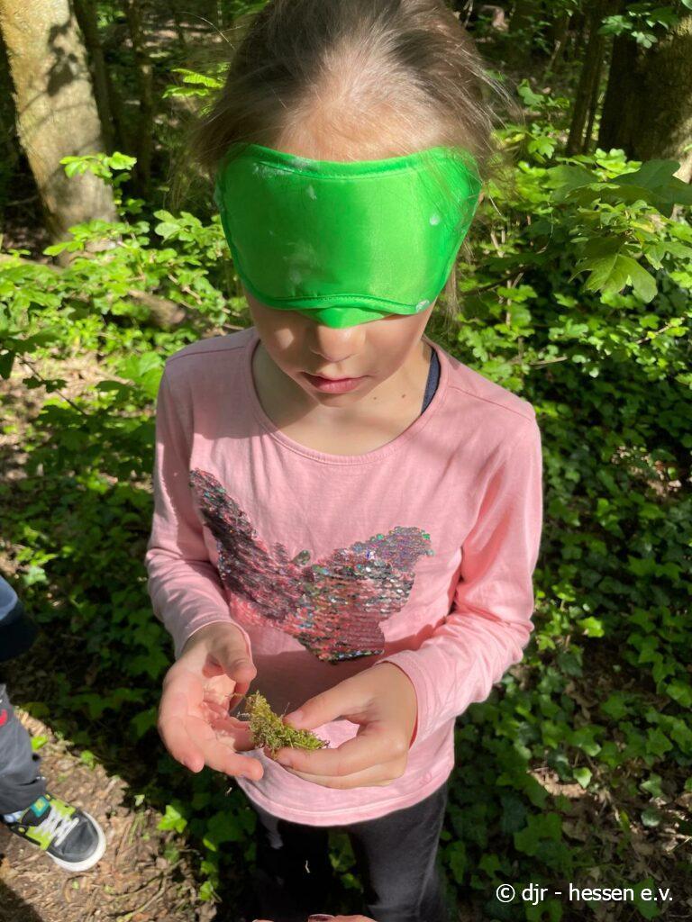 Die Kinder verlassen sich heute auf ihre Sinne: Können sie die Pflanzen im Wald erfühlen?