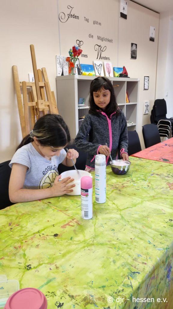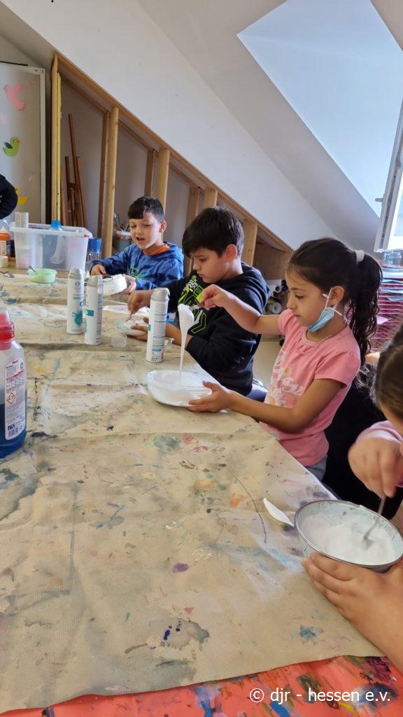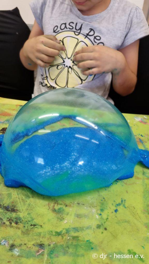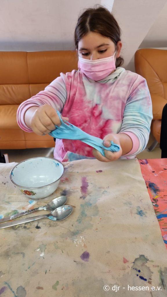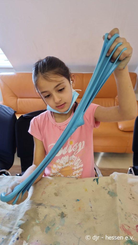 Es ist wieder Zeit für unsere Lieblingsbeschäftigung – das Herstellen von Slime. Die Kinder stellen diesen immer mit großem Elan her. Nicht nur ihre Motivation dabei ist toll, Slime zu kneten ist auch gut für die Feinmotorik.