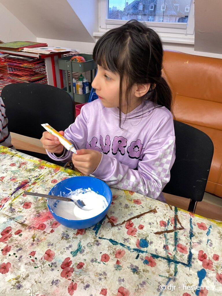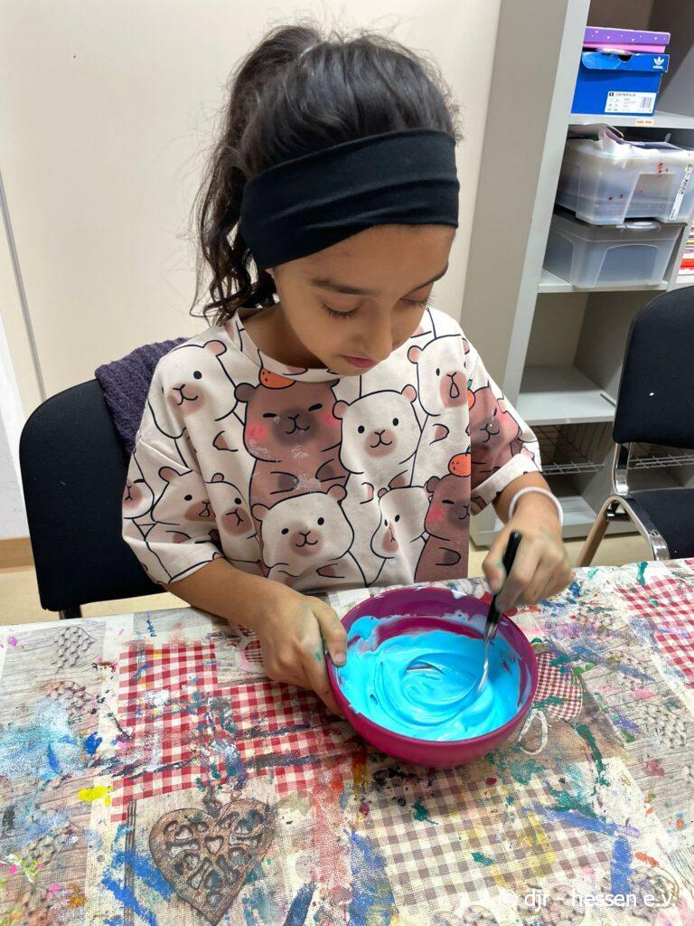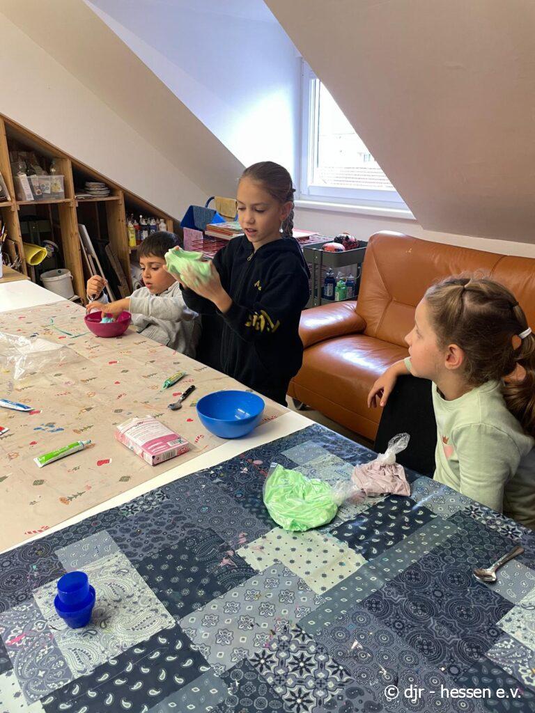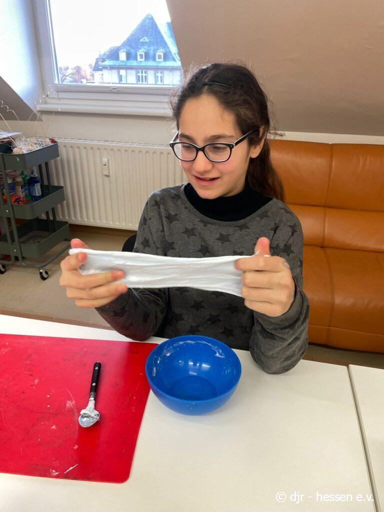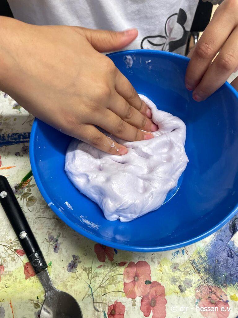 Eine Lieblingstätigkeit der Kinder ist das Herstellen von Slime. Mittlerweile kennen sie viele verschiedene Rezepte und Variationen, sodass kein Slime dem anderen gleicht.