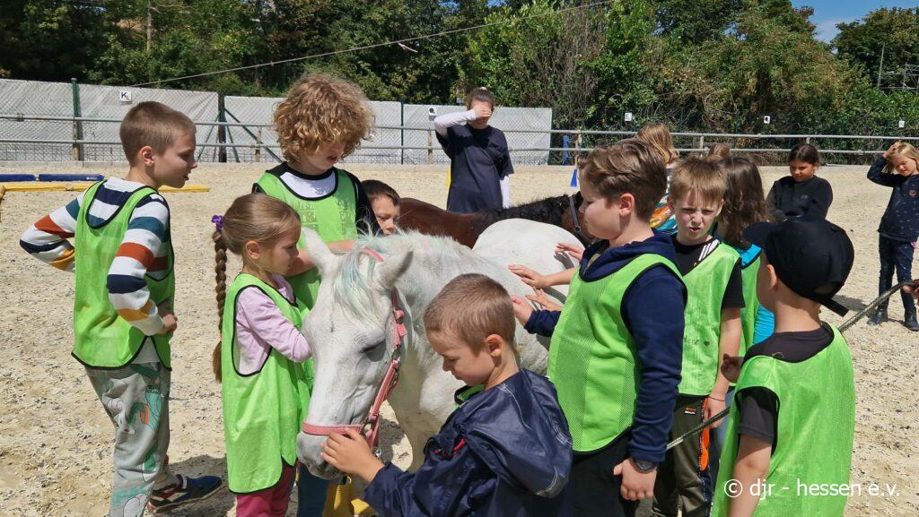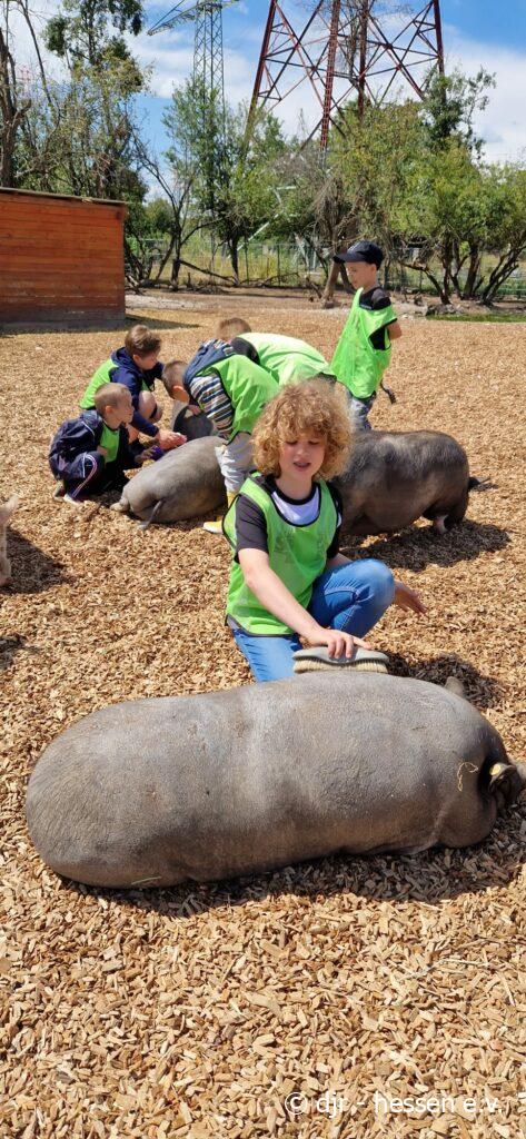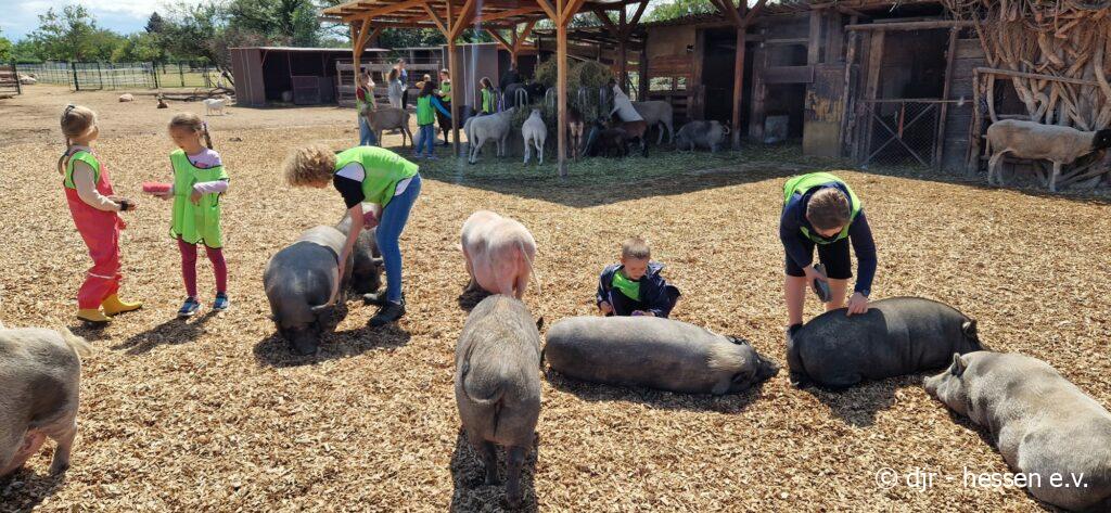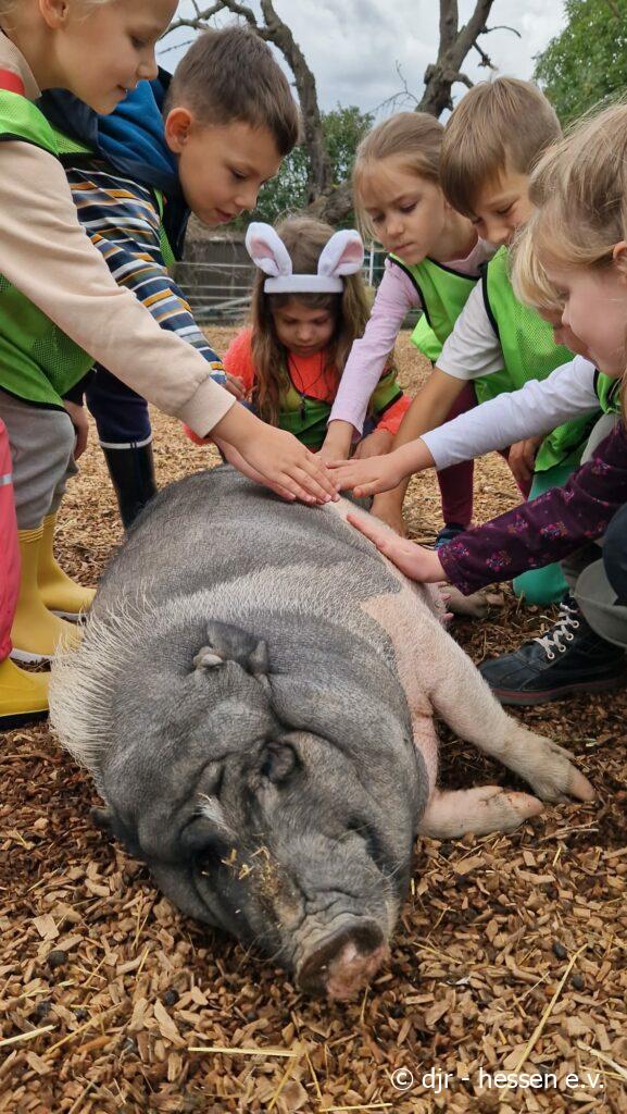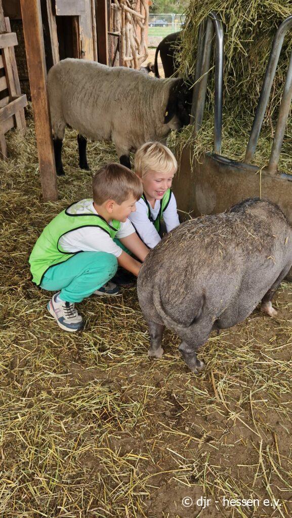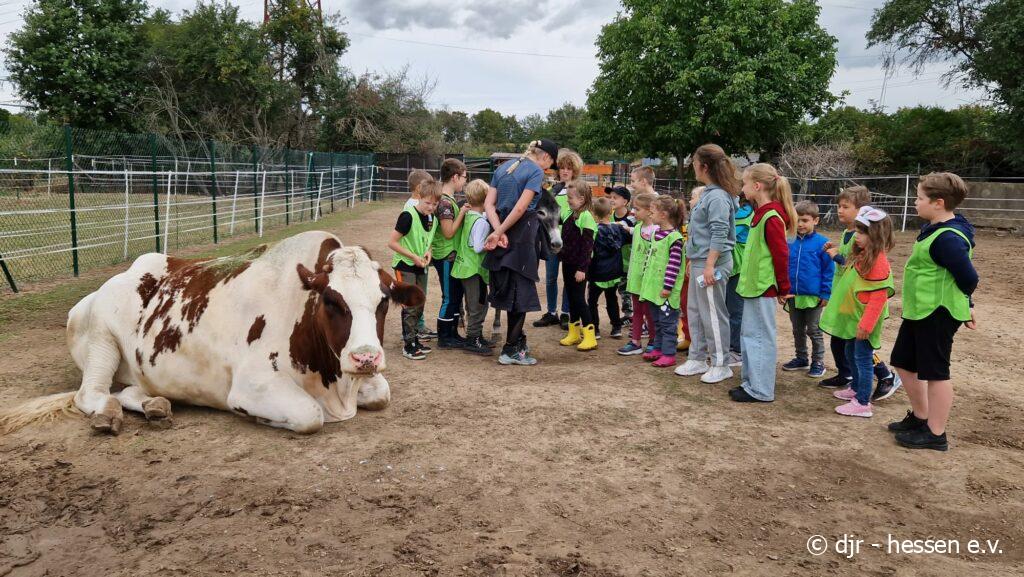 Den Tieren ganz nahe kommen: Das konnten die Kinder heute auf der Sindlinger Glückswiese. Gemeinsam haben sie viel über Kühe, Schafe, Ziegen, Pferde, Esel, Hühner und weitere Tiere gelernt und konnten sich für einige Stunden um diese Tiere kümmern.