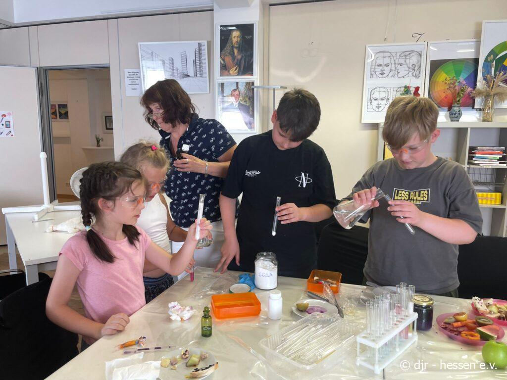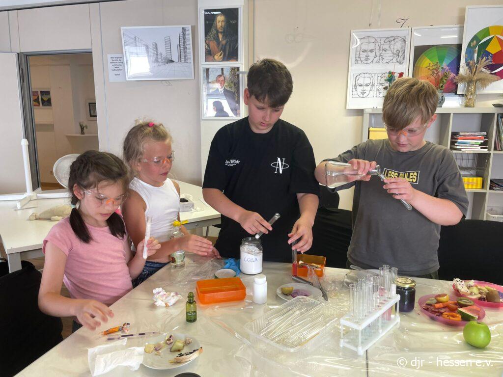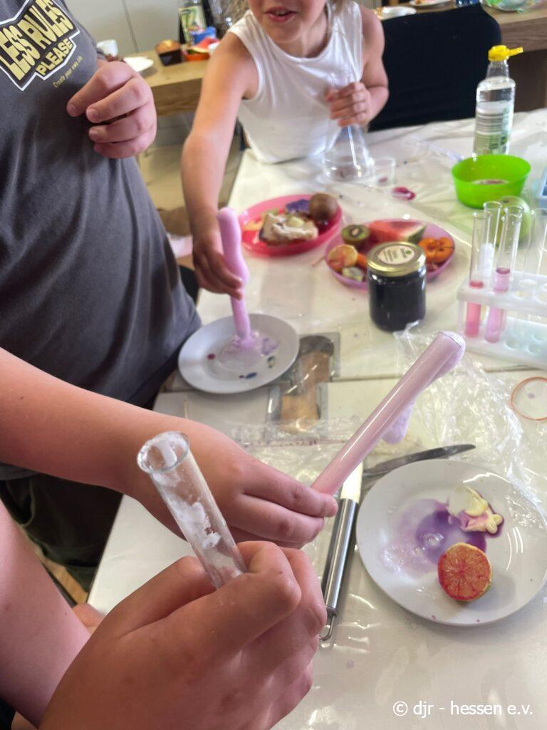 Die Kinder werden heute zu Forscherinnen und Forschern und führen spannende Experimente durch. Diese sehen nicht nur toll aus, die Kinder können dabei auch eine Menge lernen.
