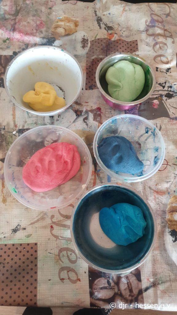 Aus buntem Salzteig haben die Kinder die verschiedensten Tiere, Figuren und Anhänger erschaffen. Durch das Mischen von Farben haben sie auch ganz neue und einzigartige Kombinationen erschaffen. Selbstverständlich haben wir die Kunstwerke gebacken und jedes Kind konnte die eigenen mitnehmen.