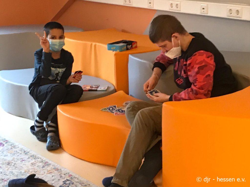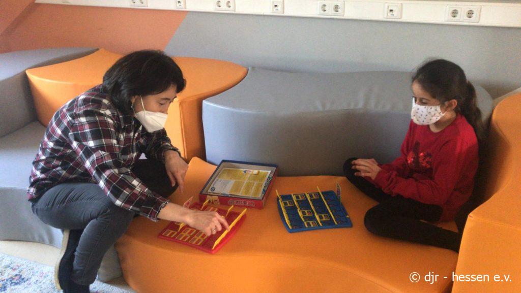Die Kinder nutzen unsere Spielangebote in ihren Pausen sehr gerne- sei es alleine mit einer:m Betreuer:in oder mit anderen Kindern. Wir freuen uns, ihnen so eine entspannte Möglichkeit bieten zu können, einander und uns näher zu kommen und abzuschalten.