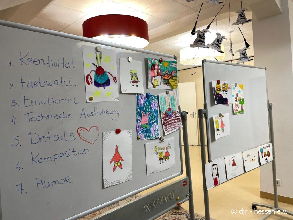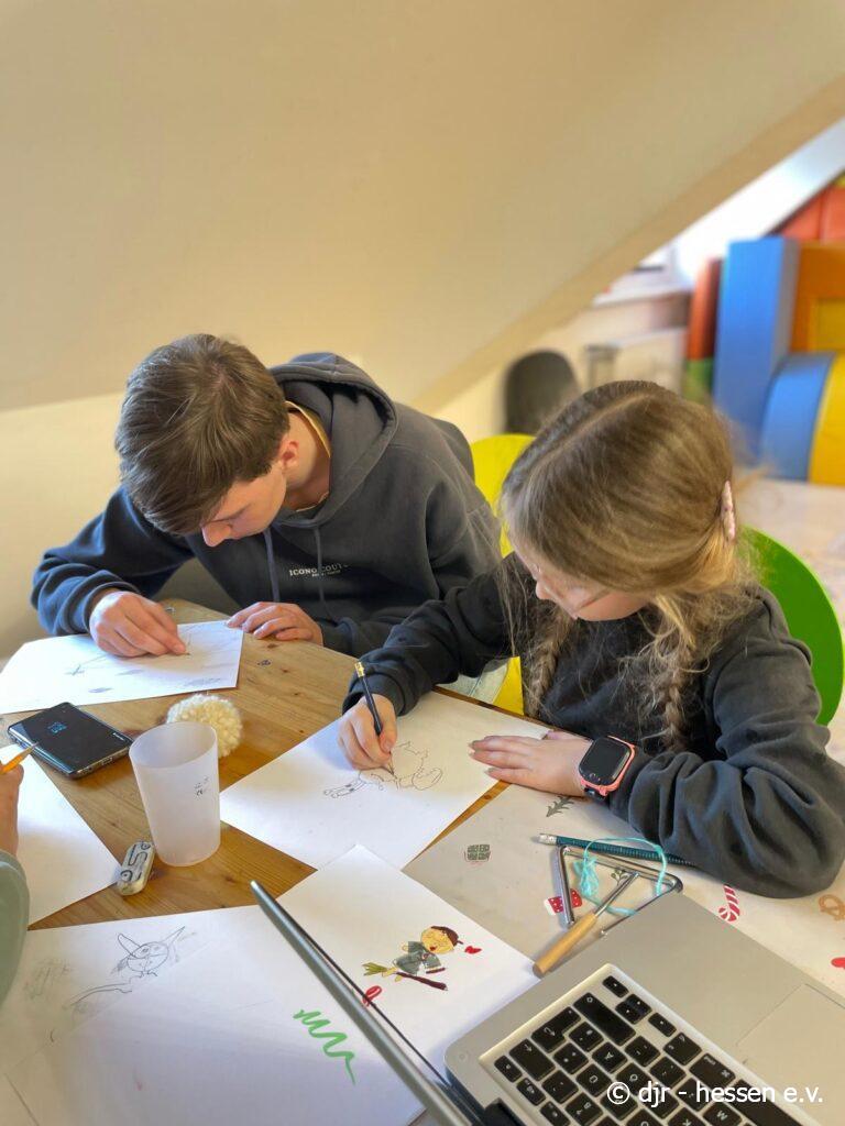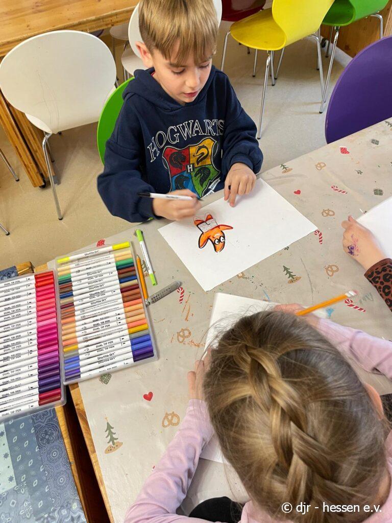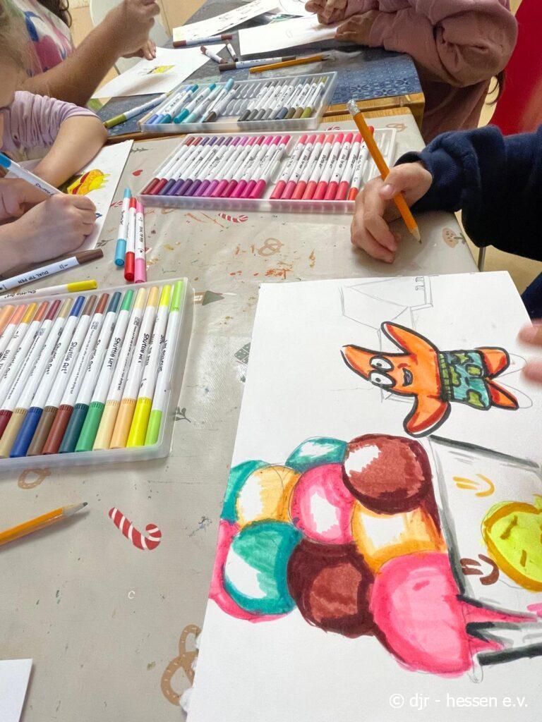 Heute können die Kinder ihrer Kreativität freien Lauf lassen: Wie sieht Dein persönlicher Superheld oder Superheldin aus? Welche Fähigkeiten hat er oder sie, wie möchtest Du sie gestalten? Die Kinder haben ganz verschiedene Vorstellungen, die sie hier visualisieren können. Im Anschluss gibt es eine kleine Ausstellung mit den Ideen der Kinder.