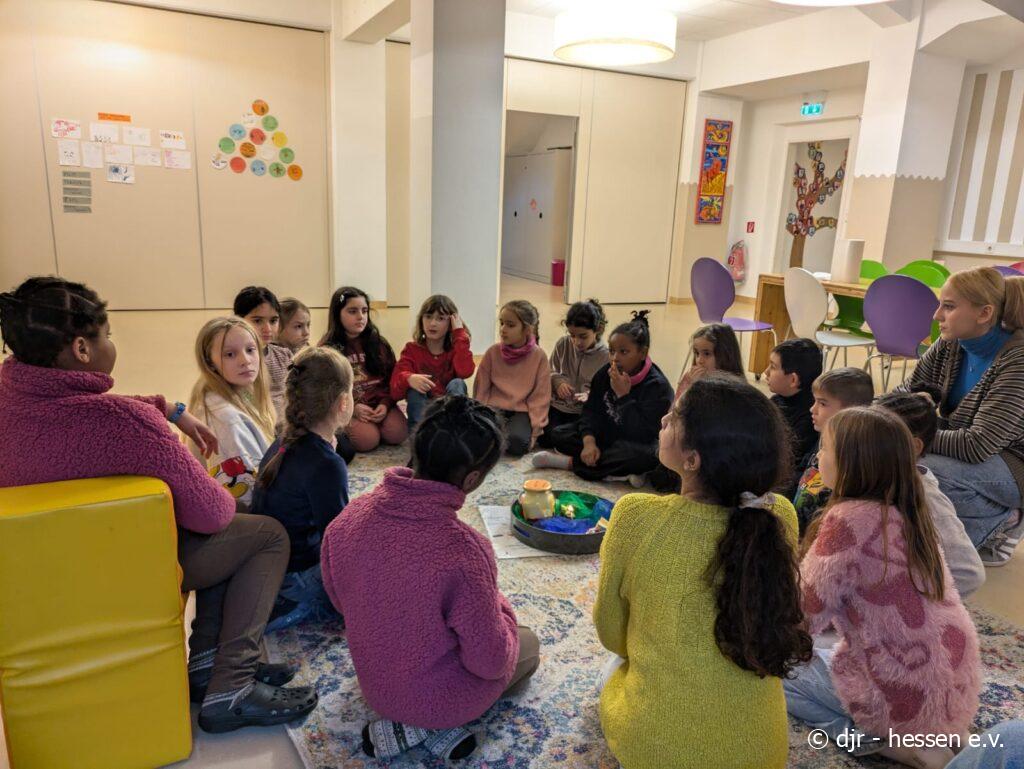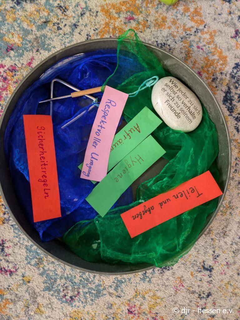 Jeden Tag führen wir mit den Kindern Besprechungskreise zu verschiedenen Themen durch. Dieses Ritual hilft uns und den Kindern, einen geregelten Tagesablauf einzuhalten, am Ort anzukommen und uns gemeinsam auszutauschen. Jeden Tag werden verschiedene aktuelle Themen besprochen, manchmal werden Kreisspiele gespielt. Die Kinder bekommen hier den Raum, sich über ihren Tag zu äußern und Themen anzusprechen, die sie beschäftigen.
