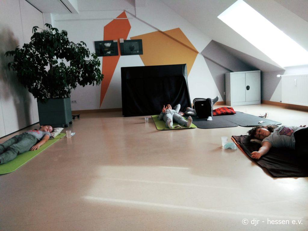 Zum Abschluss des Tages wollen die Kinder oft einfach nur einen Moment inne halten und sich entspannen. Die Möglichkeit dazu haben sie bei uns – gemeinsam mit entspannender Musik und einer Traumreise oder Geschichte. Dieses Mal hat sich sogar eins unserer älteren Kinder dazu bereiterklärt, die Geschichte vorzulesen….