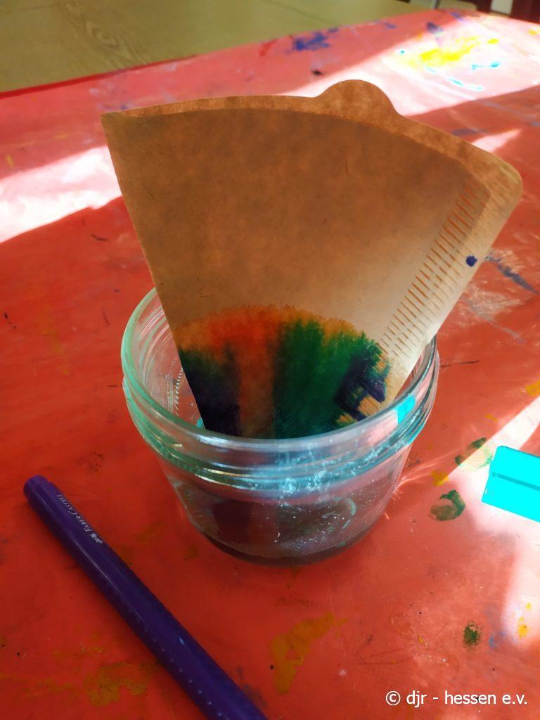 Unsere Experimente-AG hat heute wieder die buntesten Versuche gestartet. Mit Filzstiften und Filtern haben sie bunte Farbverläufe erschaffen und gelernt, was wirklich in einer Farbe drinne steckt.