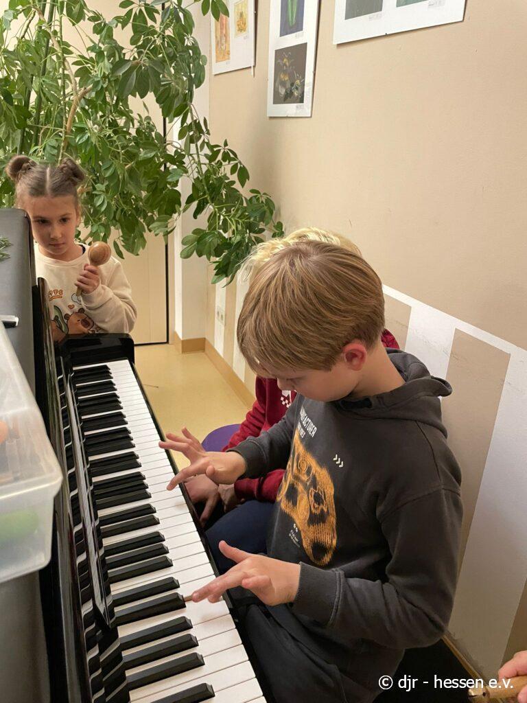 Die Kinder spielen weiterhin gerne Klavier und beherrschen inzwischen schon einige Stücke. Sowohl Neueinsteiger:innen, als auch Fortgeschrittene fühlen sich hier wohl: Die Kinder nehmen alle auf und bringen nun sogar schon selbst Stücke bei.