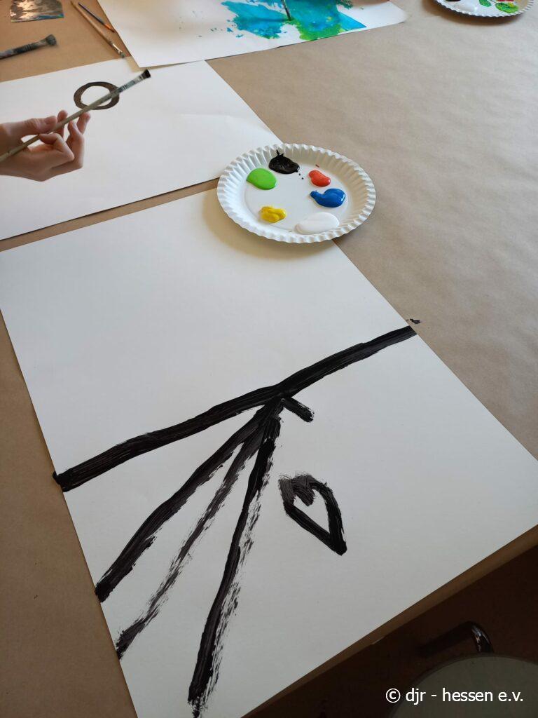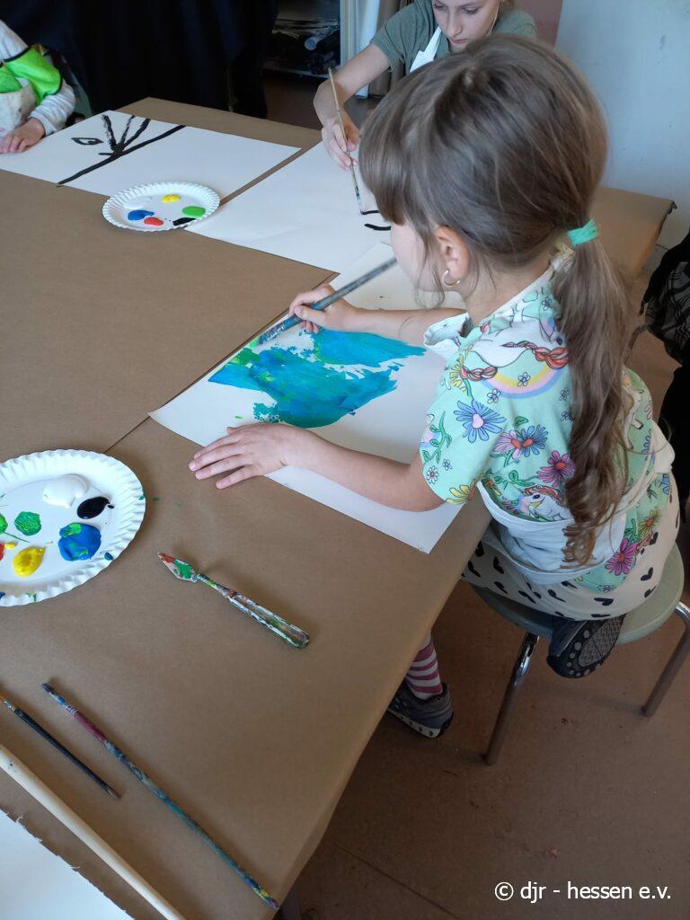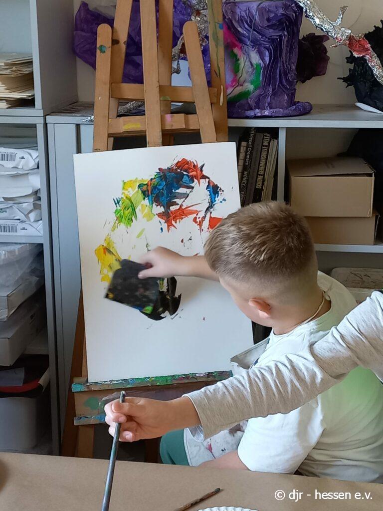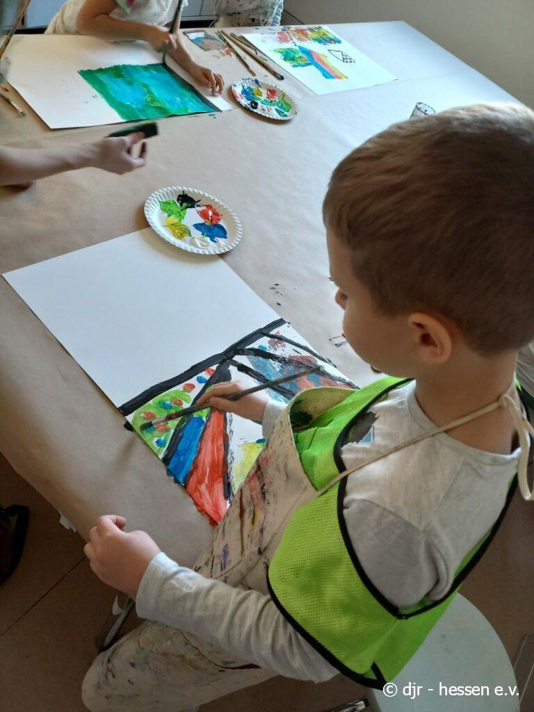 Natürlich haben wir wieder ein volles Programm für sie vorbereitet: heute dreht sich alles um Kunst. Angefangen mit einer Malstunde, die deutlich anders ablief, als gewöhnlich: es wurde auf Staffeleien gemalt, genauso wie die „richtigen“ Künstler:innen es tun. Für die Kinder auf jeden Fall eine besondere Erfahrung und sie haben lange und mit viel Konzentration an ihren Bildern gearbeitet. Dabei haben sie auch einiges über den Künstler Vincent van Gogh gelernt, an dessen berühmten Sonnenblumenbild sie sich beim Malen orientiert haben.