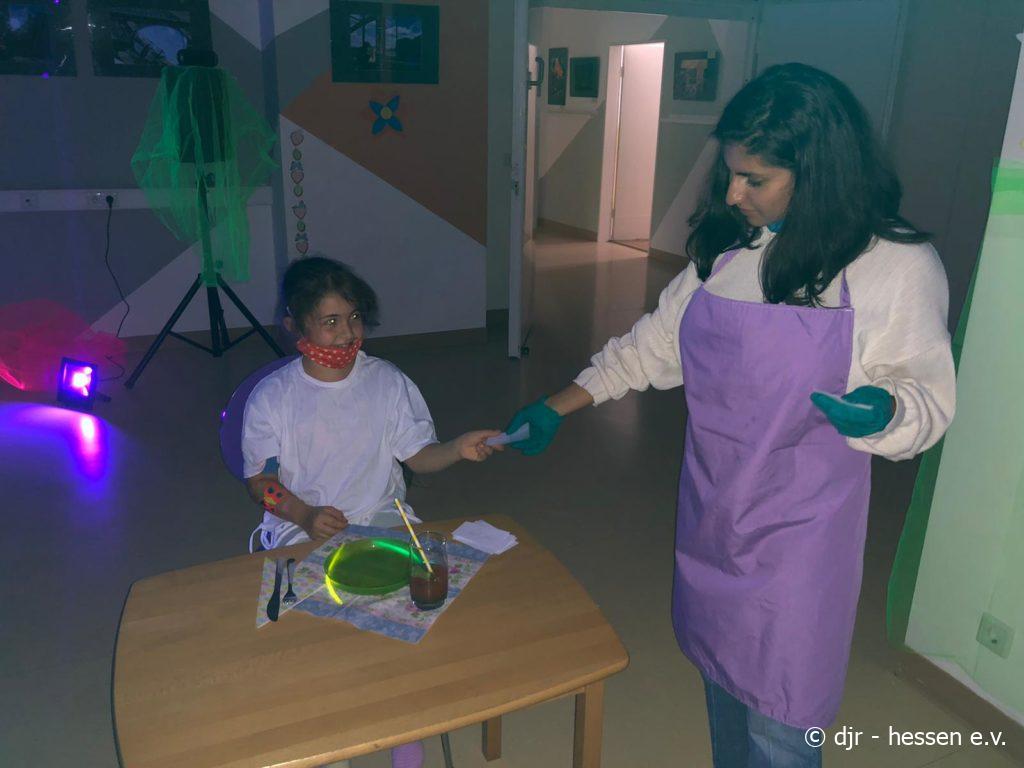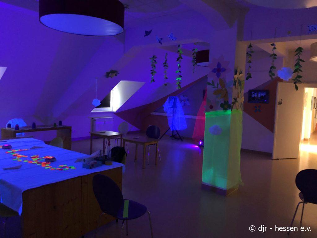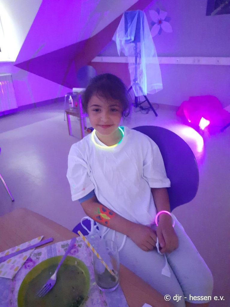 Mit toller Schminke haben wir gemeinsam mit den Kindern eine tolle Schwarzlicht-Party gefeiert. Partyspiele, leckeres Essen und tanzen – all das haben die Kinder heute in toller Atmosphäre gemeinsam erlebt.