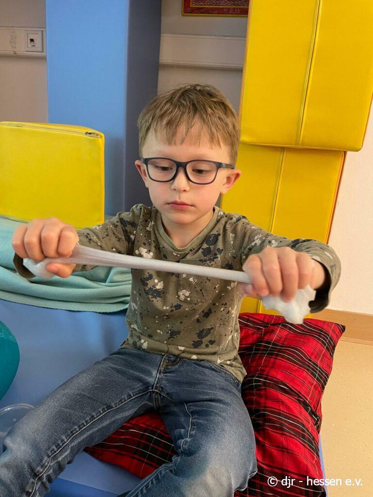 Heute stellen die Kinder ganz viel bunten Schleim her. Die Beschäftigung macht nicht nur Spaß, sondern ist auch gut für die Feinmotorik.