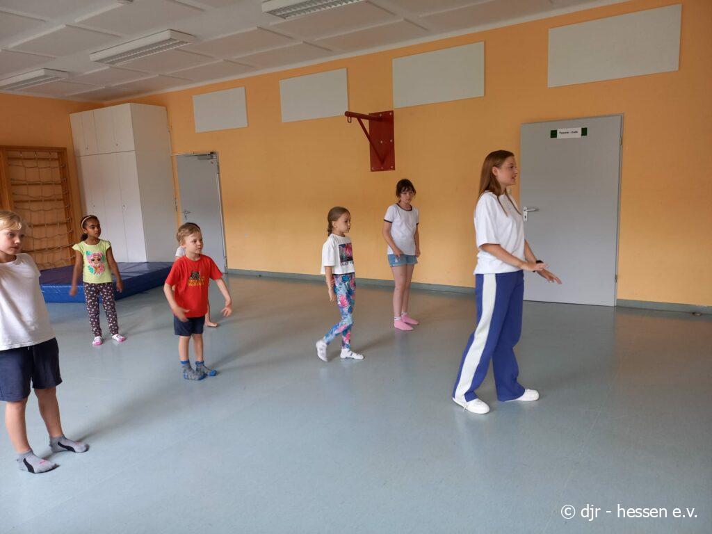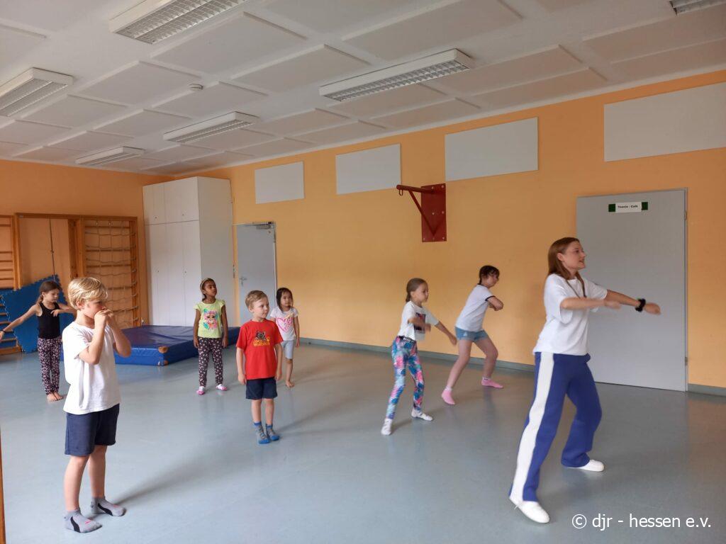 In einer schönen Atmosphäre haben die Kinder heute die Zeit in der Turnhalle genutzt, um eine Tanzchoreographie zu erlernen. Neben Tanzgrundlagen und Tanzspielen haben sie die Choreo so gut einstudiert, dass sie sie am Ende des Tages ihren Eltern vorführen konnten. Am Ende zählt aber vor allem der Spaß, den die Kinder dabei hatten und das Teamgefühl, was sie hierbei aufbauen konnten.