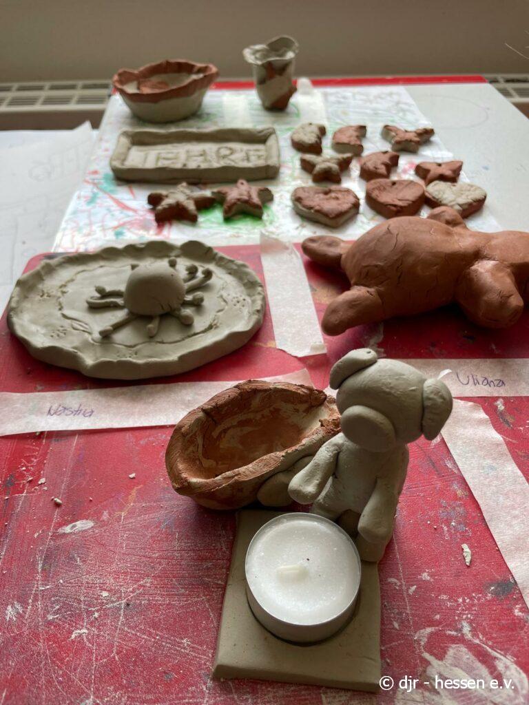 Die Kinder haben heute tolle Arbeiten aus Ton erstellt. Dabei wurden ihrer Kreativität keine Grenzen gesetzt: Von Tierfiguren über Anhänger, Schüsseln, Rosen und Kerzenhalter war alles dabei. Die Tonarbeiten eignen sich nicht nur für den eigenen Gebrauch, sondern sind ebenfalls ein perfektes Geschenk.