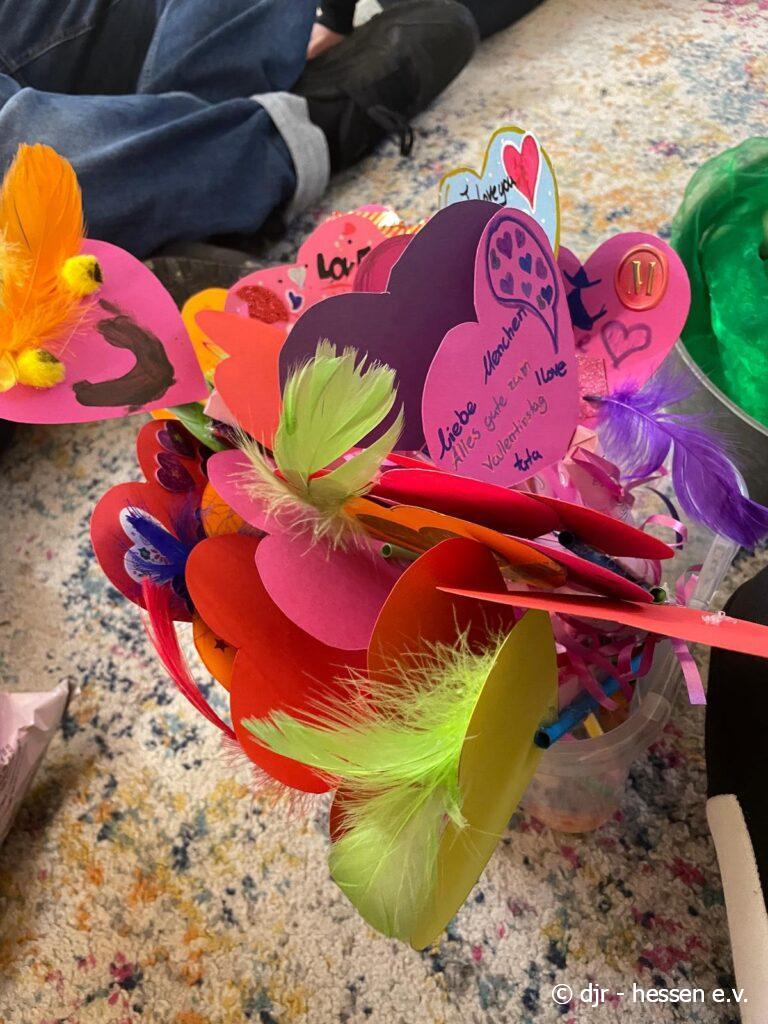 Der Valentinstag, das Fest der Liebe – gemeinsam mit den Kindern haben auch wir diesen Tag gefeiert. Von Spielen zum Thema Valentinstag über Bastelaktionen war alles dabei. Der Höhepunkt der Woche war der 14.02., an dem wir vor dem nahegelegenen Supermarkt selbstgebastelte Herzen mit lieben Worten an Passant:innen verschenkt haben. Liebe muss nicht immer romantisch sein – die schönste Form der Liebe ist die Nächstenliebe.