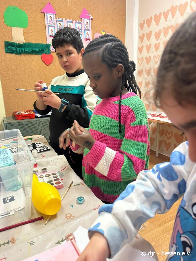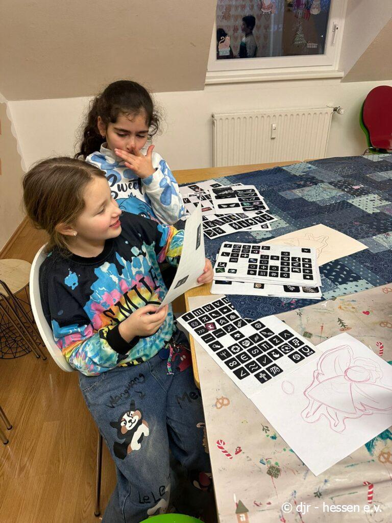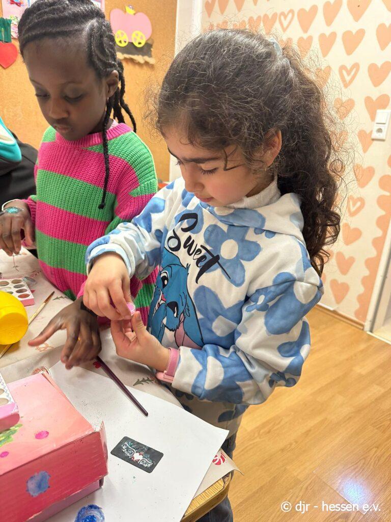 Gemeinsam gestalten die Kinder kreative Glitzertattoos.