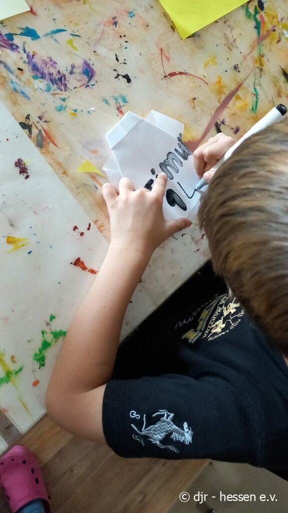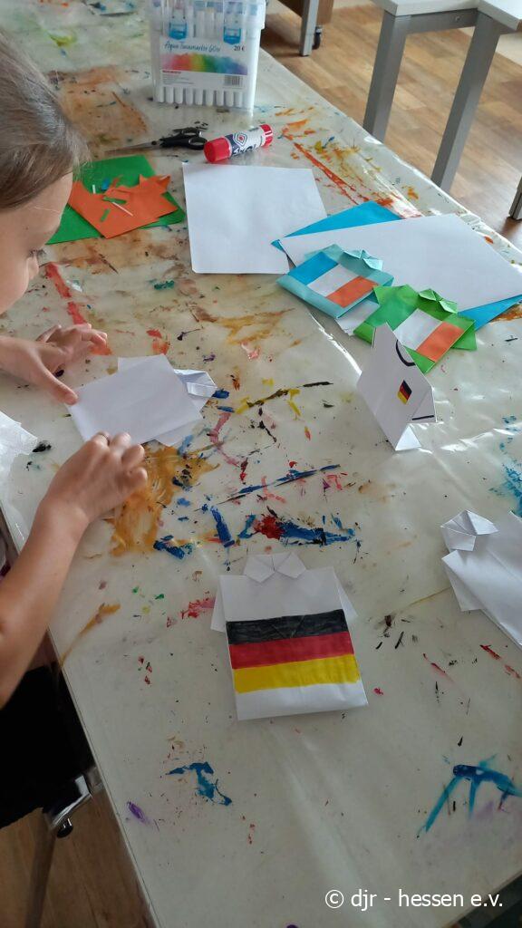 Heute basteln die Kinder kleine Trikots: Sei es für das Team, das sie anfeuern oder für sich selbst- für jede Person ist hier etwas dabei.