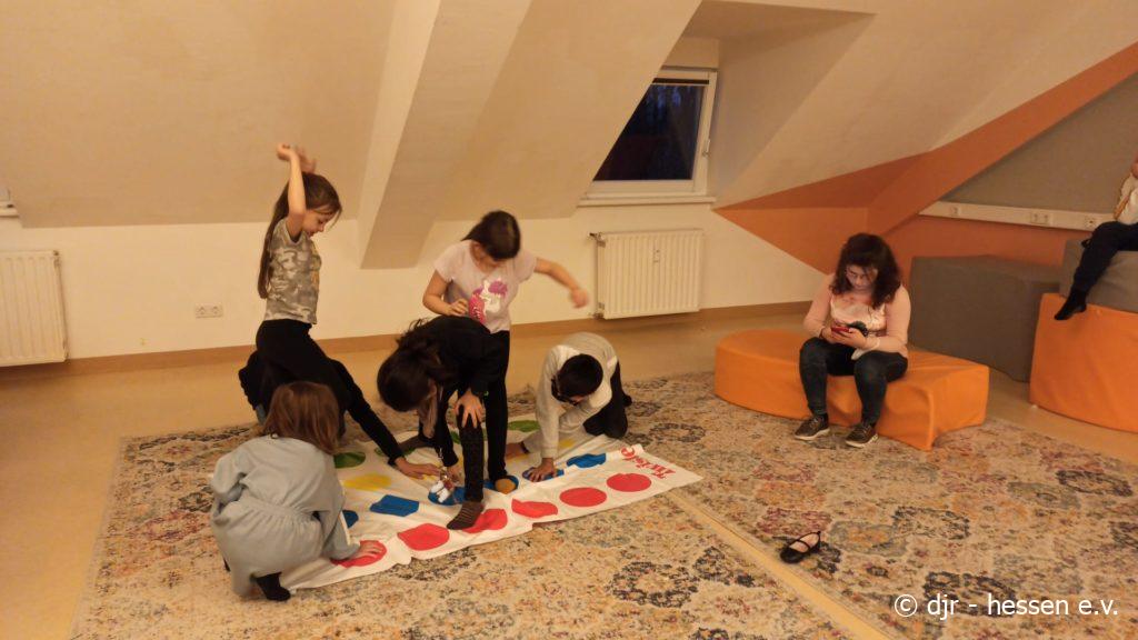Der Kinderclub hat zu Weihnachten einige neue Spiele bekommen, unter anderem Twister. Dieses Bewegungsspiel, was sich sowohl in kleinen, als auch in größeren Gruppen spielen lässt, hält uns alle auf Trab. Die Kinder spielen es gerne und auch Zuschauende haben Spaß dabei.
