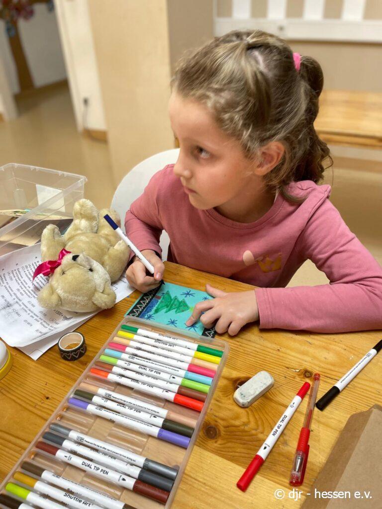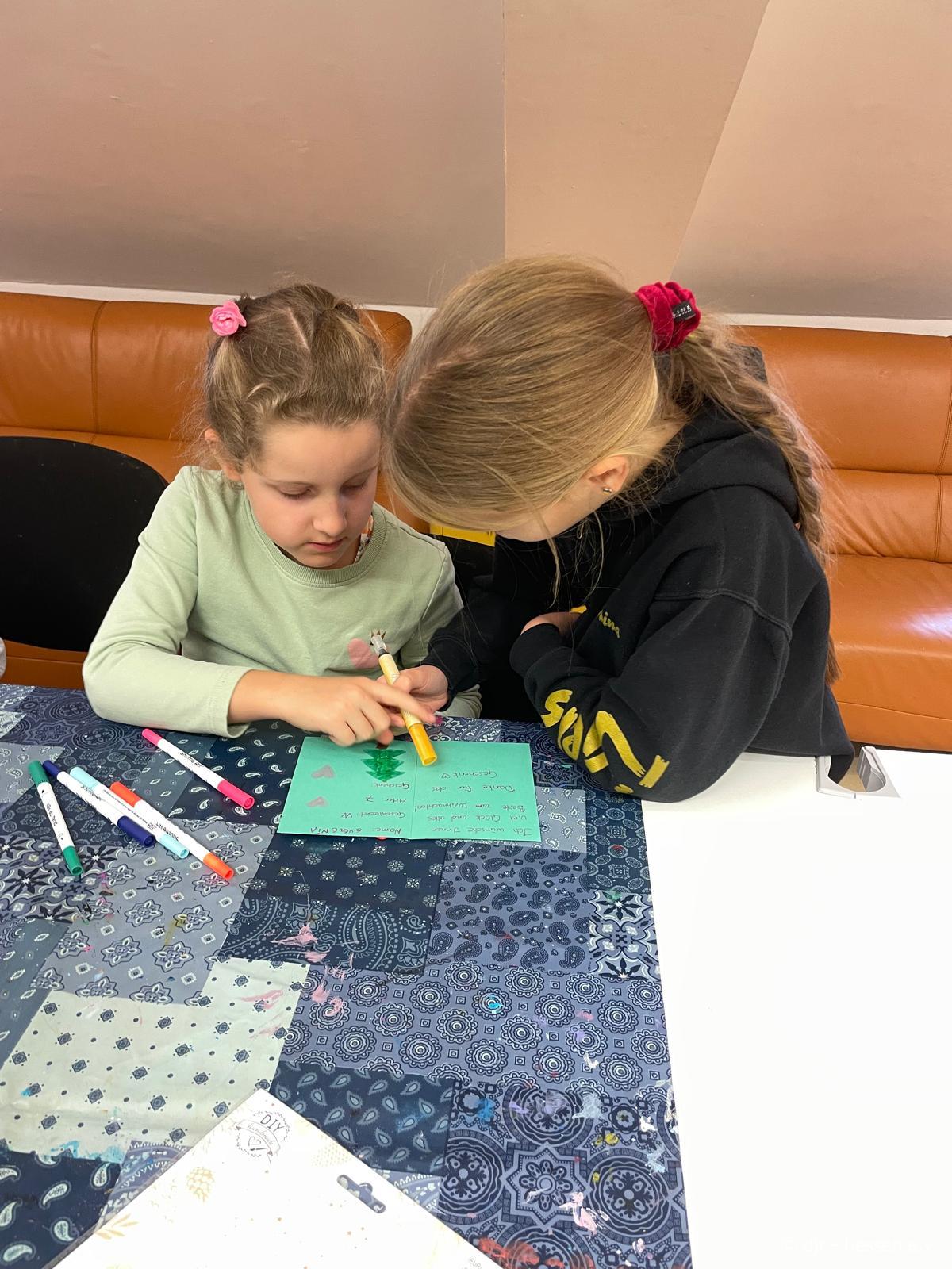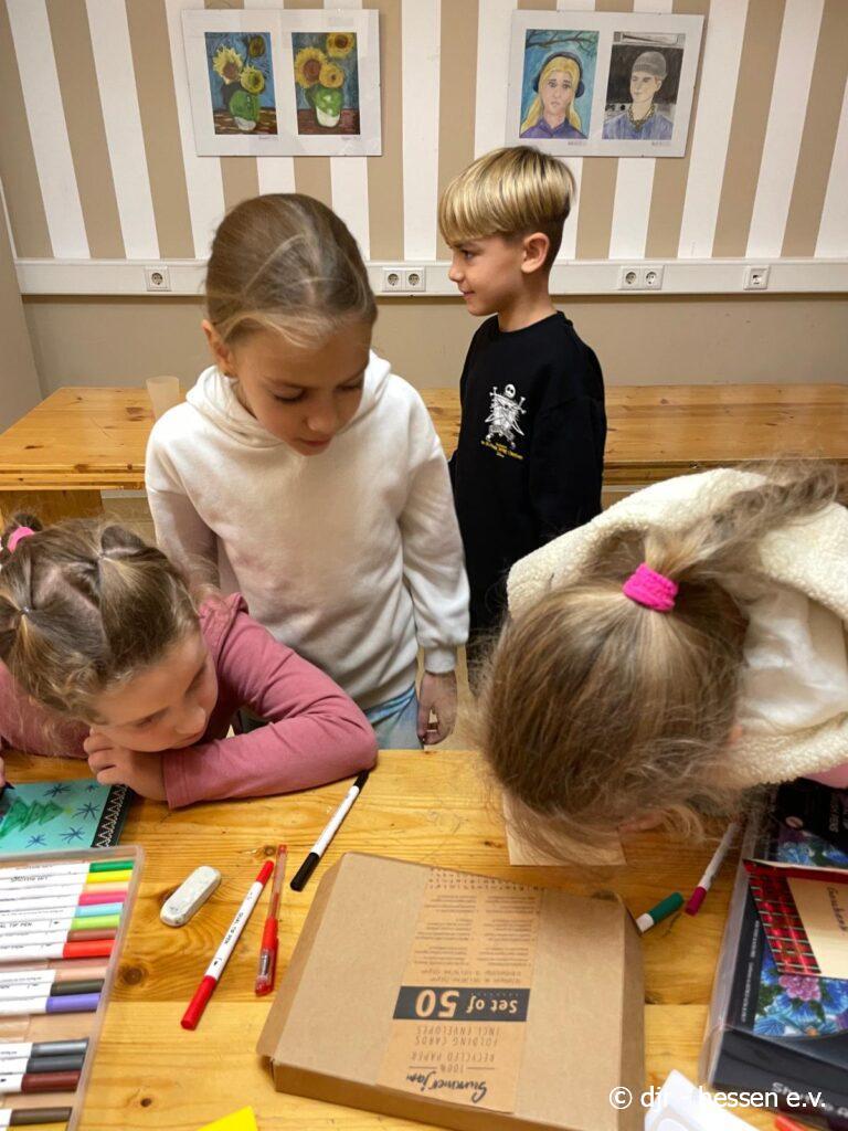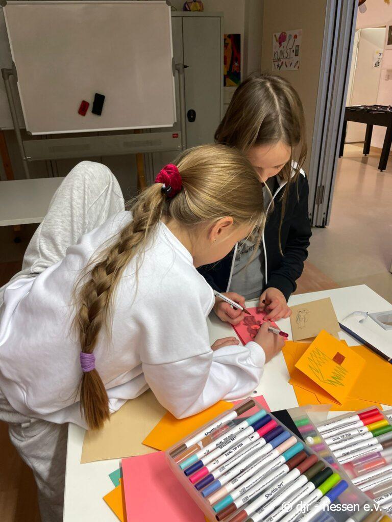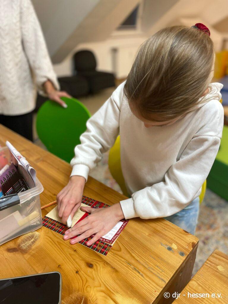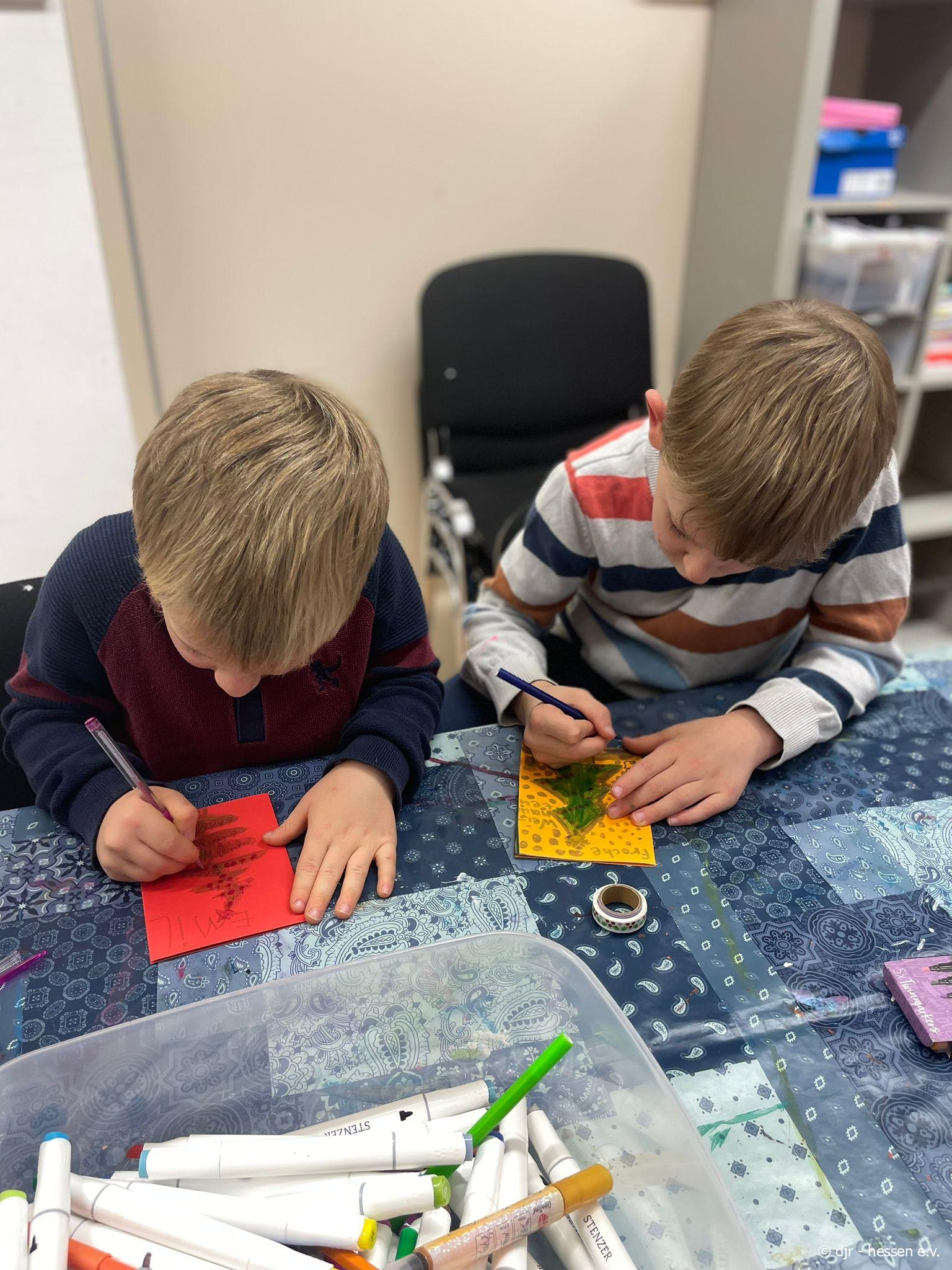 Die Kinder nutzen die Zeit vor Weihnachten und basteln schöne Weihnachtswunschkarten.