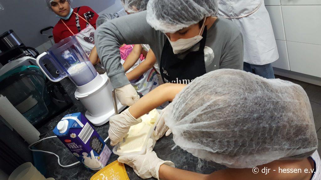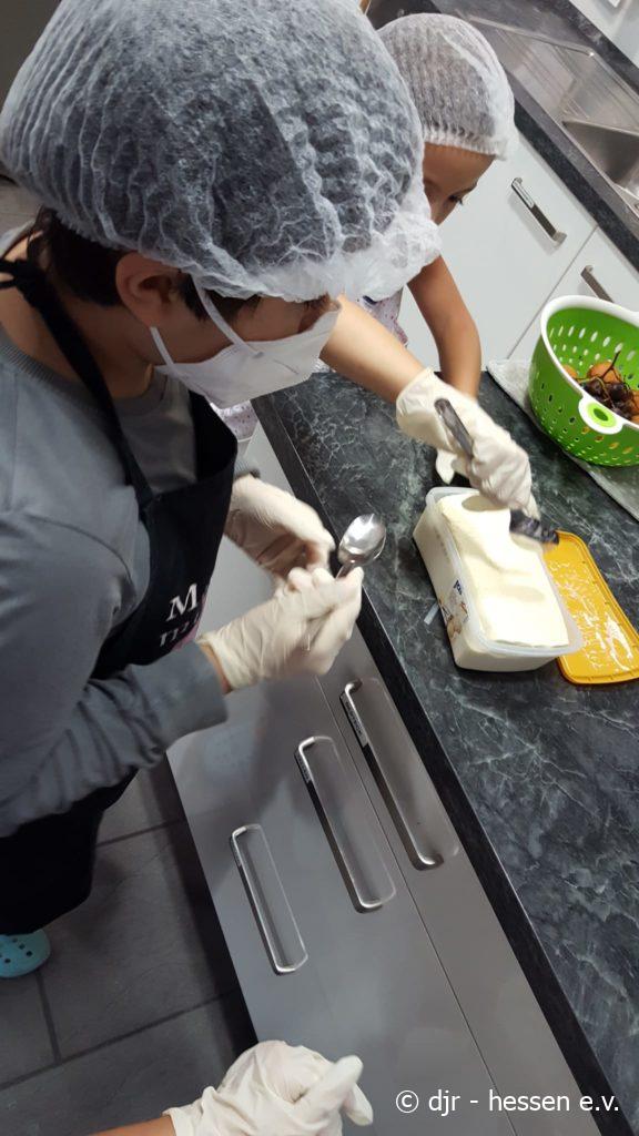 Die Kinder waren wieder in der Küche kreativ und haben sich heute Milchshakes aus Keksen und Eis hergestellt. Das Getränk schmeckt definitiv am besten, wenn man im Team daran gearbeitet hat!